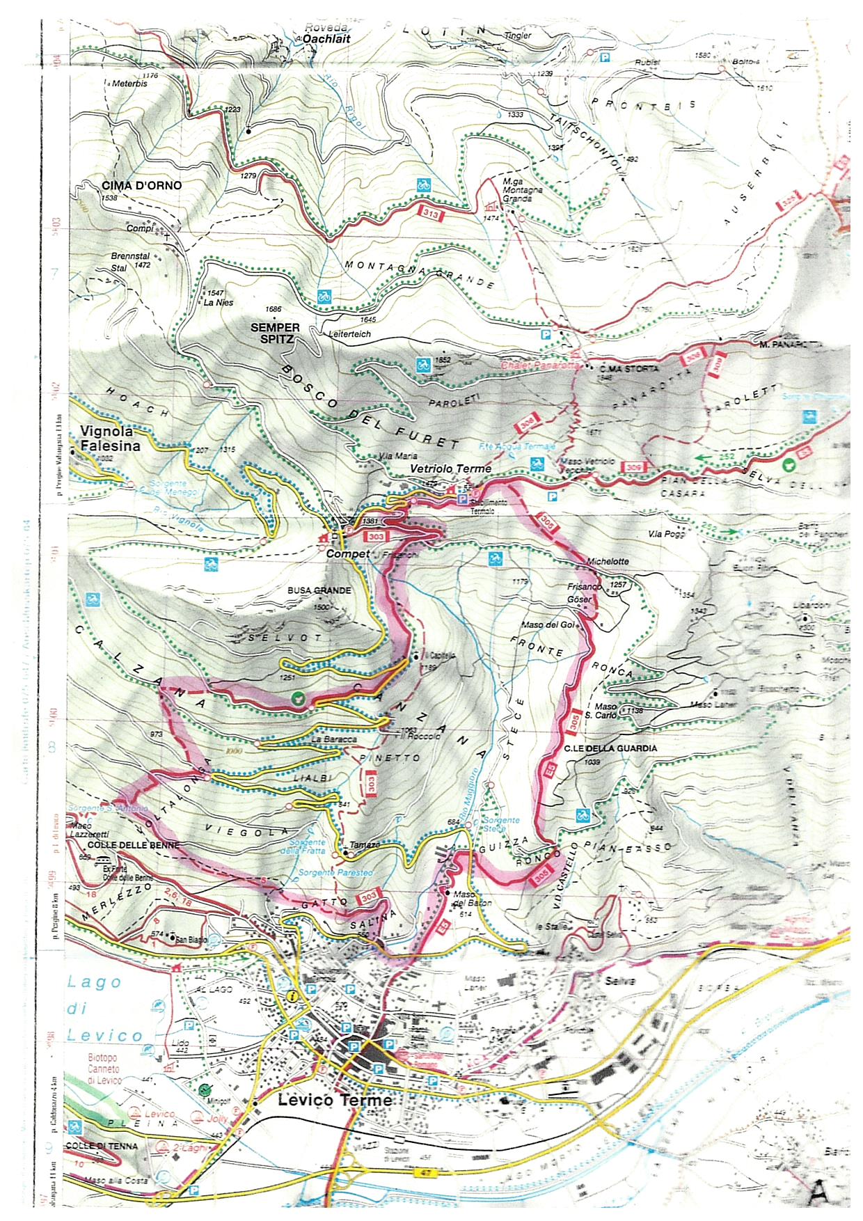 Partenza da Levico ed arrivo a Vetriolo Terme dis. + - 1000 ore 6/7