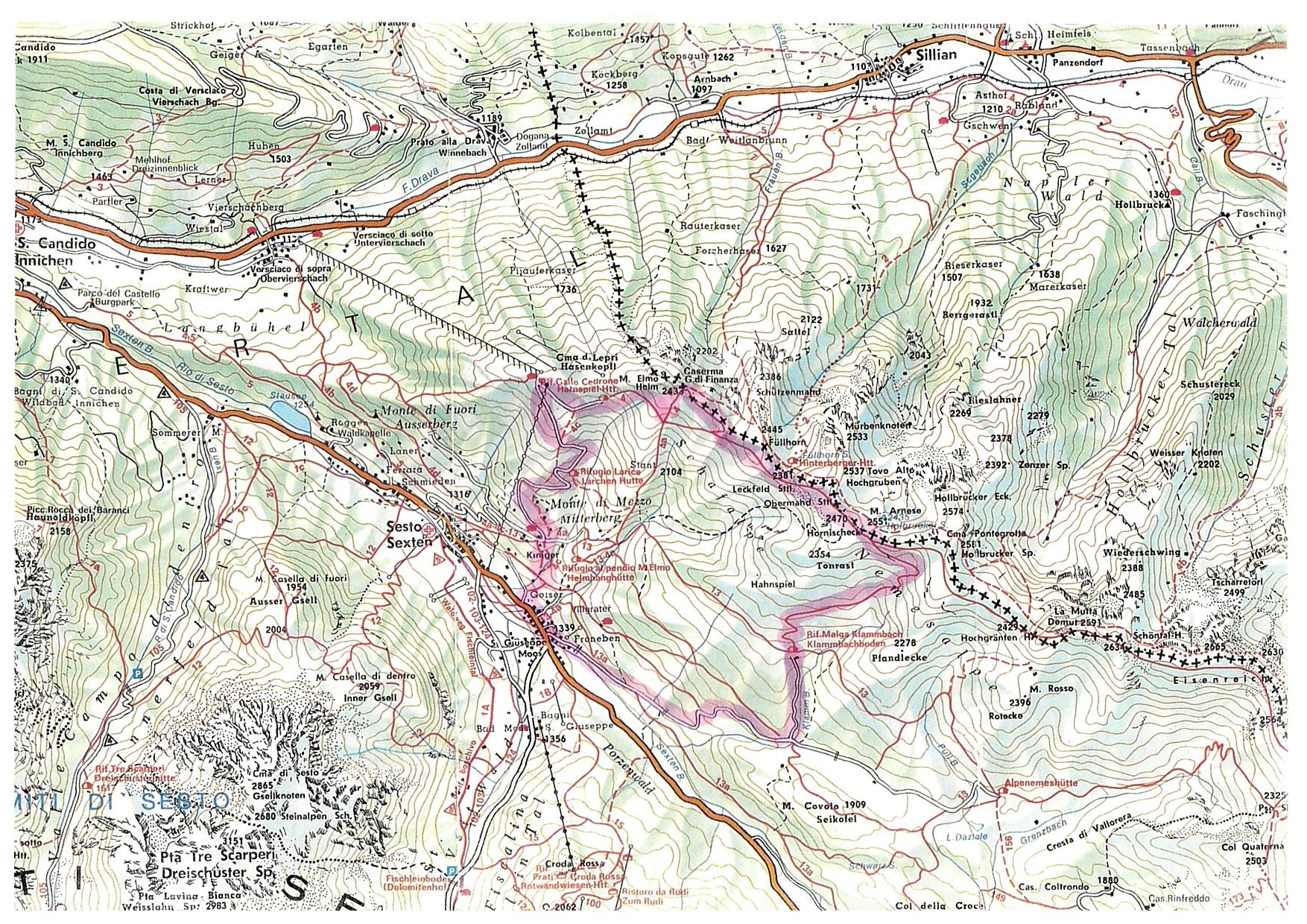 Percorso ad anello con partenza da Sesto e salita al monte Elmo, dis. + - mt. 1100 ore 6/7