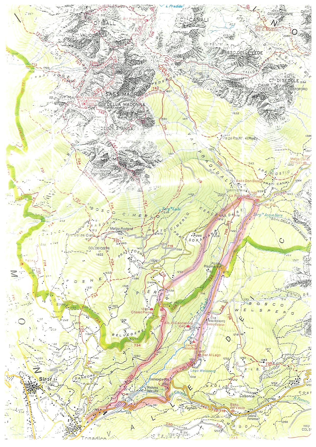 Percorso ad anello con partenza da Tonadico a Cant Del Gal, dis. + - mt. 600 ore 5 circa