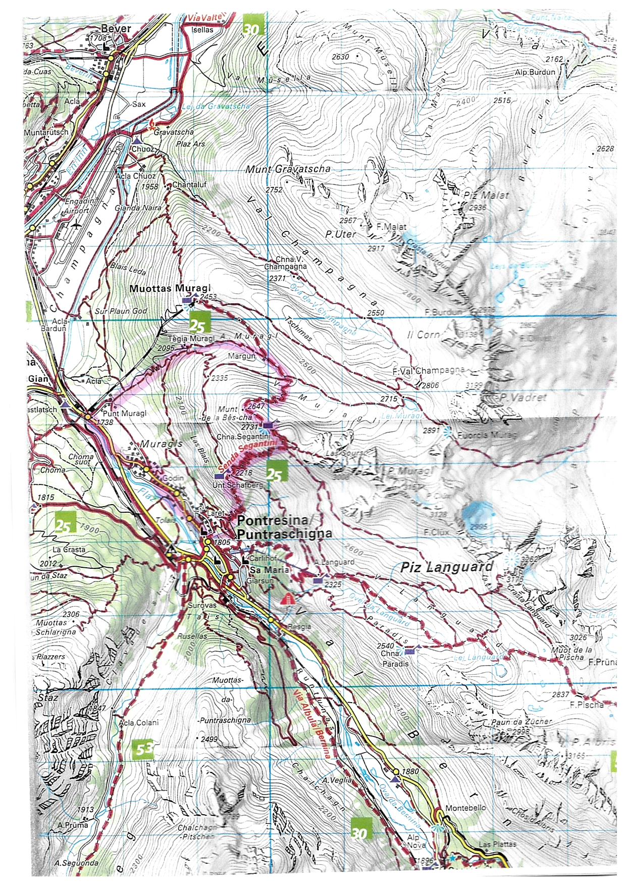 2° giorno salita alla Chamanna Segantini da Punt Muragl, dis. + - 1100 ore 7 circa