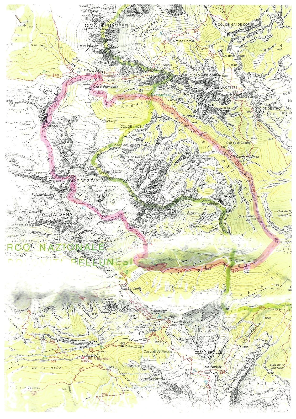 2° giorno: da rifugio Pian di Fontana a rifugio Sommariva al Pramperest passando per la Cima de Zita, dis. + 900 - 600 mt. ore 6/7 circa.
